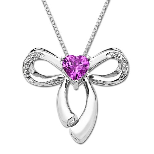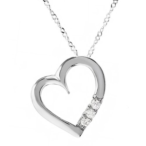 3 Stone Sapphire and Diamond Heart Pendant Necklace in Sterling Silver